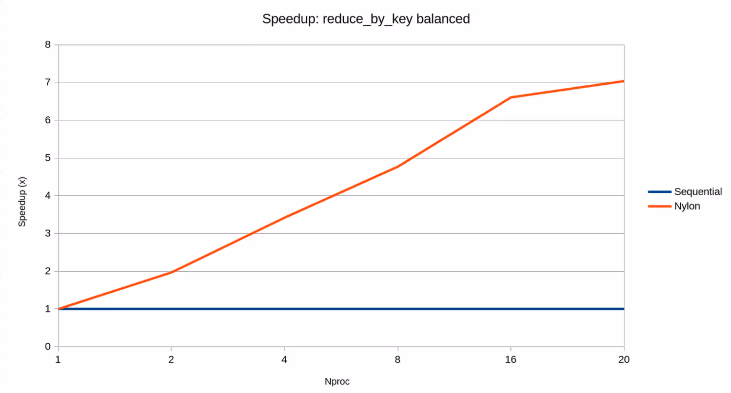 nylon’s parallel speedup on some synthetic and real-world tasks, as well as some brief discussion of the performance.